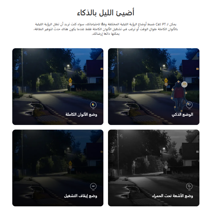 كاميرا خارجية 2K ) QHD ) متحركة 360 درجة مع نظام الذكاء الإصطناعي لإكتشاف الحركة و وضع الخصوصية لتصوير الليلي بوضوح عالي جدا. تصوير ليلي ملون. امكانية التخاطب من الجوال. ( يمكنك اضافة لوح الطقة الشمسية من الخيارات بالاسفل ) يستخدم لشحن البطارية و بكذا تستمر في العمل.