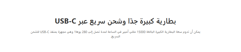 - تعمل بالبطارية - عمر بطارية يصل إلى 280 أيام (15000 مللي أمبير ) منفذ USB-C للشحن